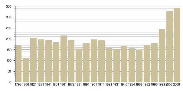Динаміка населення (base Cassini de l'EHESS pour les nombres retenus jusque 1962[3], base Insee à partir de 1968 (population sans doubles comptes puis population municipale à partir de 2006)[4] · [5] ):