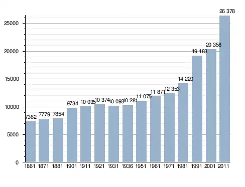 Станом на 31 грудня 2014 року в муніципалітеті офіційно проживало 598 іноземців з 46 країн, серед них 423 громадяни країн Євросоюзу та 3 громадяни України.[4]