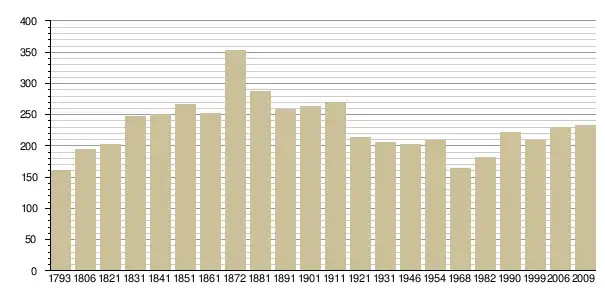Динаміка населення (INSEE [3] і Ldh/EHESS/Cassini [4]. ):