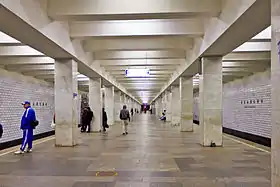 Колони оздоблені білим мармуром; колійні стіни оздоблено світло-кремовою керамічної плиткою і прикрашено металевими вставками за мотивами російських народних казок; підлогу викладено сірим гранітом; цікавою деталлю є відлита дата відкриття станції, яку і обрамляють металеві вставки.