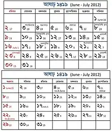 | 2 | Джоіштха | জ্যৈষ্ঠ | 31 / 32 | |