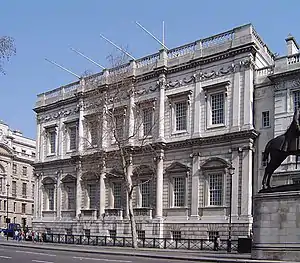 | Бенкетна зала у Вайтголлі з фрагментом пам'ятника фельдмаршалу Гейґу перед нею | ||||