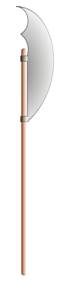 Тупою частиною, обухом, що зазвичай має спеціально зроблені для гвіздків отвори, клин кріпили до древка на кшталт звичайної сокири. Ратовище заганяли в обух, після чого прибивали цвяхами через отвори в обусі. Зазвичай таких отворів було від 3 до 7. Нижній кінець леза (косицю) кріпили до древка двома-трьома цвяхами й обмотували мотузком чи тонким ременем кількома рядами. Іноді після кожного оберту ремінь прибивали цвяхами.