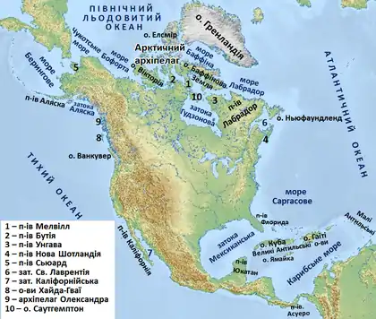Біля берегів Північної Америки розташовано багато малих заток, особливо на півночі.