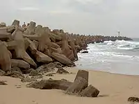 - Активні — що сприяють відкладанню наносів і утворенню пологих хвилеприбійних терас — пляжів, де найкраще гаситься енергія хвиль. Поперечні — буни (група поперечних дамб, розміщених по береговій лінії) і поздовжні — берегові захисні хвилеломи.