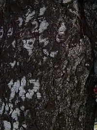 Дерево 10-20 м заввишки з гладенькою білою корою, при основі стовбура кора чорно-сіра, глибокотріщинувата.