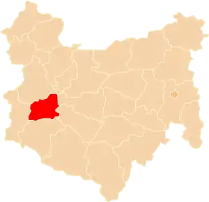 У 1880 р. повіт складався з 55 самоврядних громад (гмін) — 3 міських і 52 сільських та 34 окремих територій — загалом 99 адміністративних одиниць.[1]