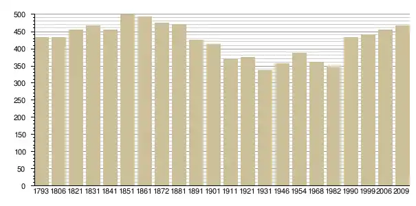 Динаміка населення (base Cassini de l'EHESS pour les nombres retenus jusque 1962[3], base Insee à partir de 1968 (population sans doubles comptes puis population municipale à partir de 2006)[4] · [5] ):