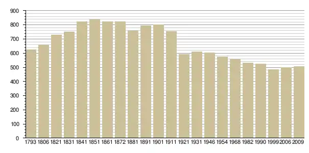 Динаміка населення (base Cassini de l'EHESS pour les nombres retenus jusque 1962[3], base Insee à partir de 1968 (population sans doubles comptes puis population municipale à partir de 2006)[4] · [5] ):