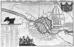 Тридцятирічна війна 1618—1648 мала для Берліна руйнівні наслідки: третину будівель було пошкоджено, населення зменшилося вдвічі. Фрідріх Вільгельм, відомий як Великий Курфюрст, приймає в 1640 державну справу від свого батька. Ним була розпочата політика імміграції та релігійної толерантності. У наступному році він заснував такі передмістя Берліна, як Фрідріхсвердер, Доротеенштадт і Фрідріхштадт.