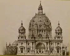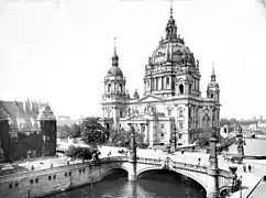Сьогоднішній Берлінський собор будувався в 1894—1905 роки за проєктом Юліуса Рашдорфа як головна церква прусських протестантів і придворна церква правлячої династії Гогенцоллернів. Собор виконаний в стилі неоренесансу. Спочатку багато оздоблений будинок з сілезького піщанику сягав разом з куполом висоти 114 метрів.