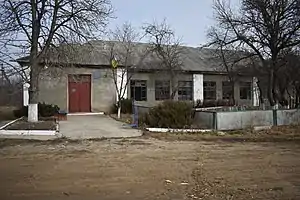 ![]() Знак при в'їзді до села та палеолітична стоянка | |