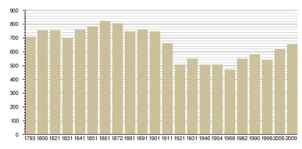 Динаміка населення (base Cassini de l'EHESS pour les nombres retenus jusqu'en 1962[4], base Insee à partir de 1968 (population sans doubles comptes puis population municipale à partir de 2006)[5] · [6] ):