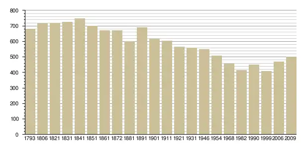 Динаміка населення (base Cassini de l'EHESS pour les nombres retenus jusque 1962[3], base Insee à partir de 1968 (population sans doubles comptes puis population municipale à partir de 2006)[4] · [5] ):
