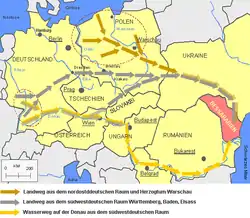 З південно-західних німецьких земель (Вюртемберг, Баден, Ельзас, Пфальц, Баварія, частково Швабія) за період з 1814 по 1842 до Бессарабії емігрувало близько 2000 сімей, в цілому близько 9000 чоловік. Переселенці діставали штамп до паспорту від німецької влади, після чого розпочинали свою подорож довжиною до 2000 км, яка тривала до шести місяців. Подорож зазвичай розпочиналася на Дунаї, біля Ульма, де вони сідали до кораблів, які пливли до Дунайської дельти і Чорноморських портів. Багато хто з мігрантів гинув дорогою від хвороб. Переселенців розміщували на карантин на острові поблизу Ізмаїла.