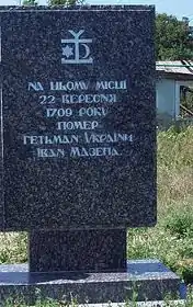 Пам'ятний знак на місці смерті Івана Мазепи у Варниці