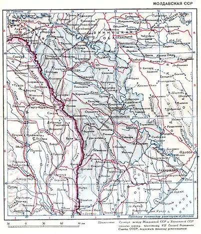 - Після анексії Радянським Союзом Бессарабії у Румунії, у період 2—10 липня 1940 р. вся Бессарабія вважалась частиною Української РСР[14].