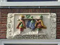 Будинок № 14 має статус національної пам'ятки (нід. rijksmonument). Будинок кутовий, триповерховий, цегляний, зведений у класичному стилі у XVIII столітті або раніше. На будинку з боку площі Ньїве-Бестенмаркт встановлена табличка-барельєф, датована приблизно 1612 роком, яка нагадує про історію виникнення цього району, заселеного біженцями-протестантами з католицьких країн. Барельєф зображує Ісуса Навина і Калеба, які несуть виноградну лозу до Ханаана. Під барельєфом напис «In 't lat van beloften, in de nieve stadt» (суч. нід. In het land van belofte, in de nieuwe stad, укр. В землі обітованій, в новому місті).