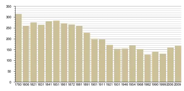 Динаміка населення (base Cassini de l'EHESS pour les nombres retenus jusque 1962[3], base Insee à partir de 1968 (population sans doubles comptes puis population municipale à partir de 2006)[4] · [5] ):
