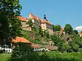 - замок Бехинє – початково твердиня епохи Пржемисловичів, побудована у другій половині XIII століття. Сучасний вигляд замку є результатом плідної праці Петра Вока з Рожмберка, останнього владаржа роду Рожмберків.