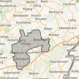 ![]() Комуна Бецдорф (помаранчевий), кантон Гревенмахер (темно-червоний) та округ Гревенмахер (темно-сірий) на карті Люксембургу | ||||