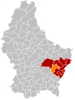 | Комуна Бецдорф (помаранчевий), кантон Гревенмахер (темно-червоний) та округ Гревенмахер (темно-сірий) на карті Люксембургу | ||||