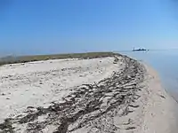 На західному кінці коси розташований маяк, один з чотирьох на Бирючій косі, який був споруджений у 1878 році. Тоді його висота складала 24,7 метра. Світлооптичний апарат забезпечував видимість на морі до 8,3 милі. Поряд із маяком знаходився одноповерховий мурований будинок для доглядача та трьох службовців, також були й інші господарські споруди.