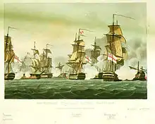 | «Mont Blanc» (74) | капітан Гійом Жан-Ноель | 180 убитих і поранених | Захоплений, прийнятий у склад флоту як HMS «Mont Blanc» | |