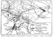 9 березня бої відновилися. Дві роти чехословацького батальйону контратакували німців під Соколовим і завдали їм великі втрати. 11 березня чехословаки перехопили німецьке радіоповідомлення про наступні контратаки. Радянська артилерія почала вести вогонь по місцях скупчення німецьких військ. Після того, як німці відбили Харків 15 березня 1943 року, склалася загроза розгрому і загибелі 1-ї роти чехословацького батальйону, тому чехословаки почали тактичний відступ.