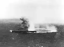 ![]() Вибух на авіаносці «Лексінгтон» через кілька годин після атаки японськими літаками Вибух на авіаносці «Лексінгтон» через кілька годин після атаки японськими літаками | |||||||