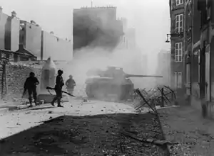 ![]() Американська самохідна установка М18 Hellcat веде бій на вулицях Бресту. Серпень 1944 | |||||||||
