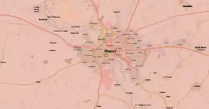![]() Мапа просування іракської армії в місті Мосул під час битви Мапа просування іракської армії в місті Мосул під час битви | |||||||