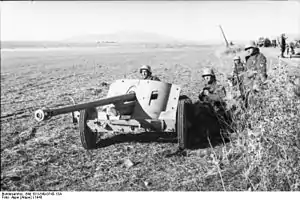 ![]() Артилерійська обслуга 50-мм протитанкової гармати Pak 38 на вогневій позиції. XI-й повітряний корпус. Туніс. 1943 Артилерійська обслуга 50-мм протитанкової гармати Pak 38 на вогневій позиції. XI-й повітряний корпус. Туніс. 1943 | |||||||