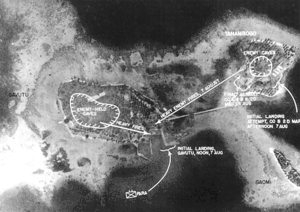 ![]() Американські морські піхотинці висаджуються на берег острова Тулагі 7 серпня 1942 року Американські морські піхотинці висаджуються на берег острова Тулагі 7 серпня 1942 року | |||||||