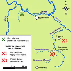 Рать Щєні просувалась трактом Вязьма — Єльня, зупинилась біля села Ведроша для остаточного збору воєвод. Кошкін відмовився підпорядковуватись Щені, так як вважав, що рід Щені є менш знатним.