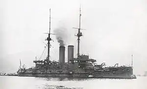 ![]() Японський флагманський панцирник «Мікасса» Японський флагманський панцирник «Мікасса» | |||||||