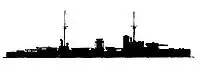 Водотоннажність — 6250 т, довжина — 102 м, швидкість — 11 км/год., озброєння — 2 360-мм гармати, 1 150-мм гармата, 2 торпедних апарати, особовий склад — 198 осіб