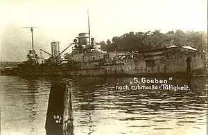 Взимку 1912 року, під час Балканської війни, внаслідок холоду, холери, нестачі провіанту та наступу болгарських військ Османська імперія опинилась перед загрозою втрати Константинополя. Для захисту інтересів країн, що підписали Берлінський трактат, до Константинополя було відправлено німецьку ескадру, яка складалася всього з двох кораблів — лінкору «Гебен» та легкого крейсеру «Бреслау». 5 листопада, прискорено споряджені німецькі кораблі відправились до місця призначення.