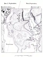 Генерал Раєвський вирушив густим лісом, повільно долаючи місцеві перешкоди; при колоні несли на руках дві гармати в розібраному вигляді; близько п'яти кілометрів загін пройшов за перші чотири години. Залишивши у Сіполі полк з двома гарматами, Раєвський рушив далі, до села Хероя і почав розгортатися проти лівого флангу позиції. Але, спроби вийти з лісу були зупинені картеччю. Крім того, шведи, помітивши ізольоване положення обхідної колони і користуючись бездіяльністю на фронті позиції, підтягнули до свого лівого флангу резерви і частину сил з правого флангу, і почали атакувати Раєвського, щоб відрізати його від головних сил.