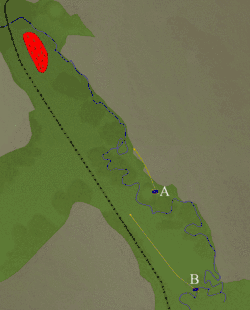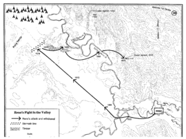 Шалений Кінь повів індіанців в атаку, вони також зайшли з флангів та в тил до американців. Ріно вирішив прорватися на пагорб на протилежному боці річки (сьогодні називається Ріно-Хілл), при відступі його роти зазнали значних втрат: 46 людей загинуло, ще близько двох десятків не змогли прорватися на пагорб, сховавшись у заростях. Роти зайняли оборону на пагорбі, а основна маса індіанців вирушила на північ, звідки також лунали звуки битви. З початку бою пройшло близько сорока п'яти хвилин.