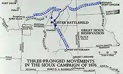 Після закінчення Громадянської війни поселенці потягнулися на Захід континенту, що викликало порушення угод з індіанськими племенами народу сіу та війни. Виснажені війною з Півднем, війська США зазнали поразки і в 1868 році був укладений договір, за яким закривалася дорога, що проходить через індіанські землі, і знищувалися вибудовані вздовж неї форти. У лютому 1876 року, підготувавшись до нової війни, війська генералів Альфреда Террі і Джорджа Крука вторглися в індіанські землі. Сіу довелося зніматися з місць і відступати племінними групами.