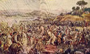 | 20000 вояків:(включно з 2000 британських найманців[1])[2] | 22600 вояків: (включно з німецькими, швейцарськими й італійськими найманцями) | ||||||