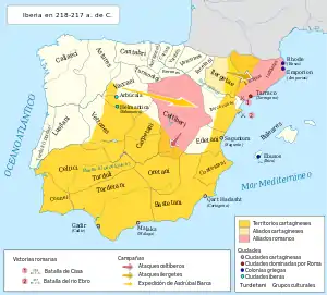Після успішного завершення облоги Сагунта Ганнібал Барка, давши армії відпочити, влітку 218 року до н. е. вирушив в похід до Італії. Його військо, за свідченням Полібія, налічувало 90000 піхоти і 12000 кавалерії (Ганс Деллбрук в книзі “Warfare in Antiquity” оцінює її кількість в 46000 піхоти і 11000 кінноти). Літо цього року Ганнібал присвятив завоюванню території північніше Ебро. Підкоривши місцеві племена іберів, але не чіпаючи грецькі міста на узбережжі, Ганнібал покинув Іспанію і вирушив через південну Галлію і Альпи до Італії.