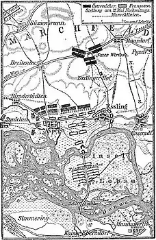 У цей час війська Карла в жорстокій битві вибили французів з Асперна, але Есслінг, обороною якого керував Жан Буде, їм захопити поки не вдавалося (пізніше за виявлену стійкість генерал отримає від Наполеона маєток і графський титул)[2].