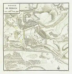 ![]() Перемога герцога де Брольї під Бергеном, 13 квітня 1759 р. Йозеф Еразм Беллінг. Гравюра XVIII ст. | |||||||
