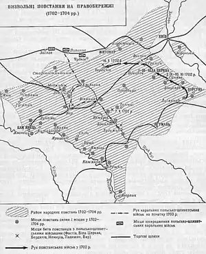 16 жовтня 1702 року на світанку головні сили повстанців підступили до Бердичева, поблизу якого в укріпленому таборі перебувало коронне військо. Сталася кривава битва, в якій коронне військо і шляхетське ополчення були вщент розгромлені. Повстанці оволоділи містом і фортецею. Рештки розгромлених каральних військ утекли на Волинь в район міст Любара і Чорториї.