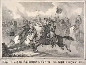 Коли Наполеон після битви повертався до свого табору, на його ескорт напали козаки з піками, які проникли в тил французької армії. Наполеон був змушений відбиватись своєю шпагою[4], наліт козаків було успішно відбито його свитою.