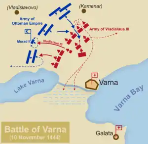 ![]() Ян Матейко. «Битва під Варною» (1879) Ян Матейко. «Битва під Варною» (1879) | |||||||