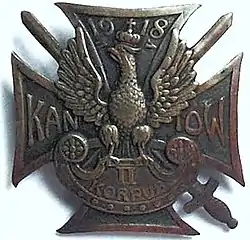 ![]() Пам'ятна нагорода з латуні польських солдатів після битви. Текст: "1918 - Канів - II корпус". Пам'ятна нагорода з латуні польських солдатів після битви. Текст: "1918 - Канів - II корпус". | |||||||