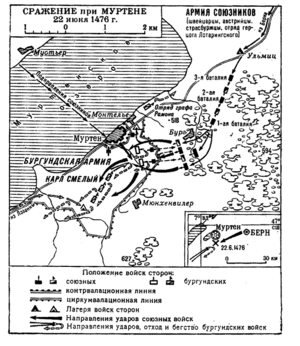 ![]() Битва під Муртеном (ілюстрація 1513 року ) Битва під Муртеном (ілюстрація 1513 року ) | |||||||